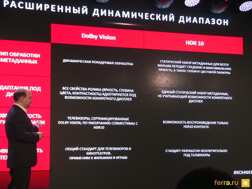 Поддержкой DolbyVision уже обладает ряд кинокартин. Например, «Выживший» с Лёнчиком Ди Каприо и крайняя часть сериала «Звездных войн». Известно, что сервис NETFLIX будет использовать в своих проектах DolbyVision. Стандарт, к слову, полностью совместим с HDR. Также на презентации сообщили, что российский онлайн-кинотеатр ivi перейдет на показ фильмов в HDR-качестве. Первой «ласточкой» станет отечественная кинокартина «Герой».