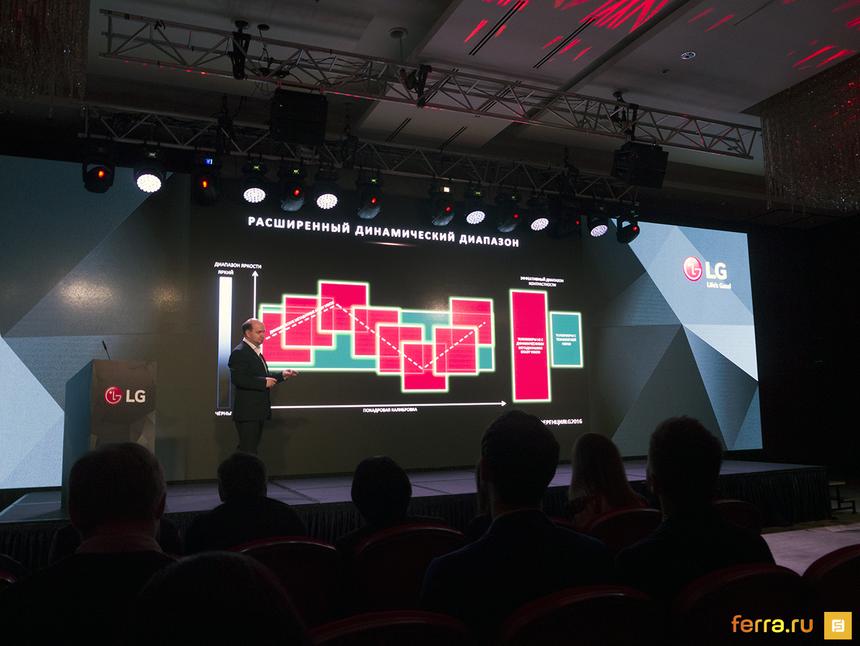Артём Стрельбицкий, руководитель направления маркетинга телевизионной и IT-продукции LG в России, во время презентации указал на то, что абсолютное большинство видеоконтента, будь он снят профессионалом или любителем, в любом случае ужато до качества 8 бит на канал. Все OLED-матрицы этого года получили полную поддержку 10 бит. Следовательно, количество полутонов составляет один миллиард. Это дает определенный запас прочности, ведь 10-битного контента становится все больше.