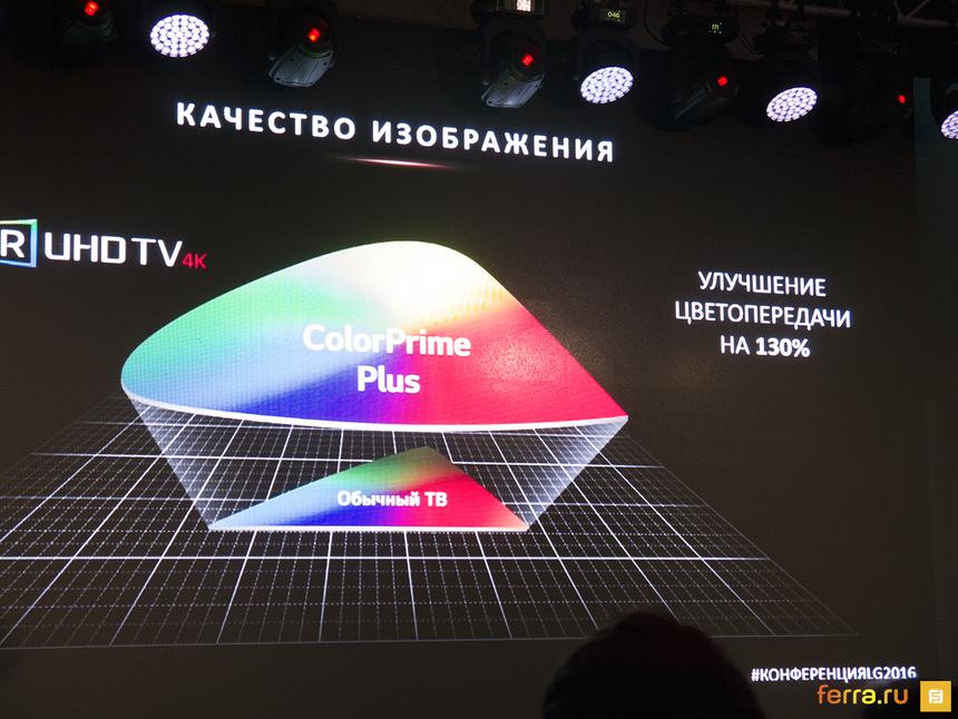 ЖК-телевизорам Артём Стрельбицкий уделил минимум времени. Этот момент наглядно демонстрирует расстановку приоритетов компании. Новинки 2016 года основаны на матрице IPS. Они получили покрытие TrueBlack. Матрицы также имеют палитру с миллиардом оттенков. За равномерность подсветки, как я уже писал, отвечают сразу 150 автономных блоков. Цветовой охват матрицы увеличен на 130%.